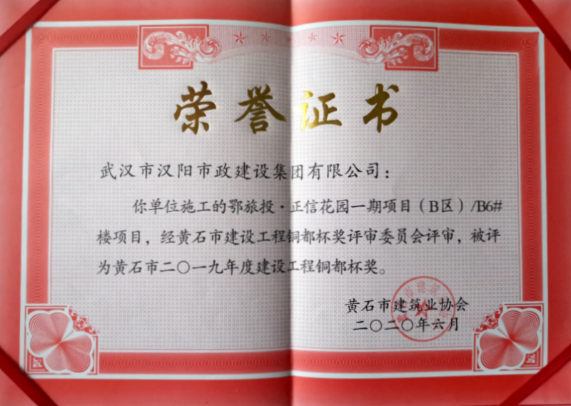 2019年度建設工程銅都杯獎(鄂旅投·正信花園一期項目(B區(qū))B6#樓項目