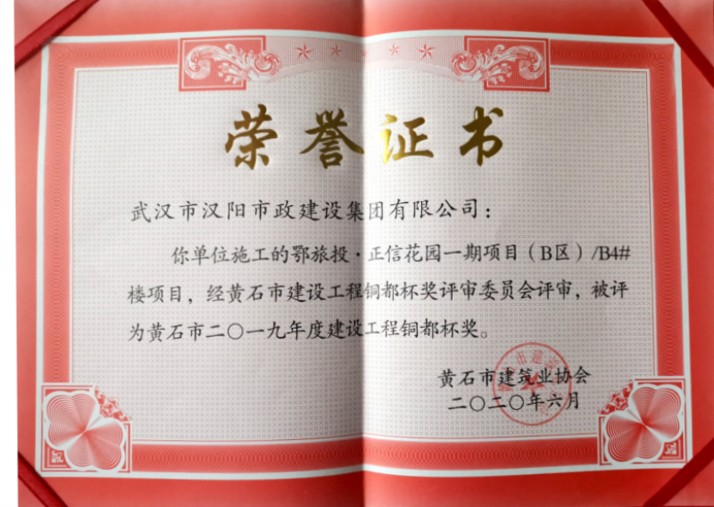 2019年度建設工程銅都杯獎(鄂旅投·正信花園一期項目(B區(qū))B4#樓項目