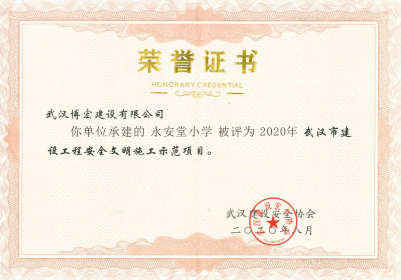 2020年上半年武漢市建設工程安全文明施工示范項目(永安堂小學)