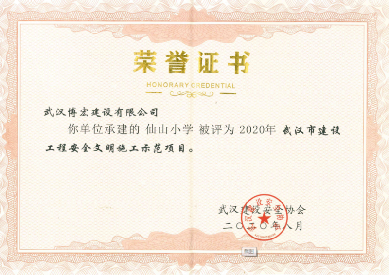 2020年上半年武漢市建設工程安全文明施工示范項目(仙山小學)