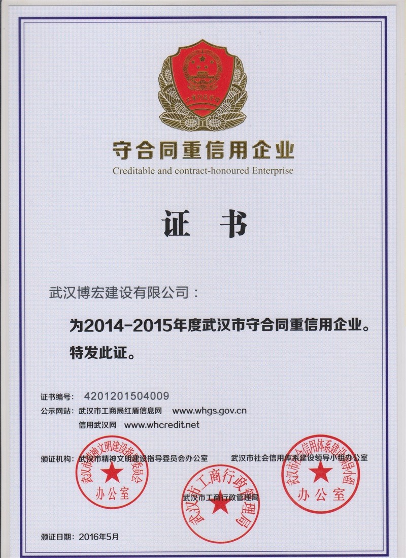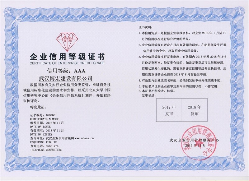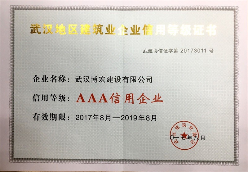 武漢地區(qū)建筑業(yè)企業(yè)信用等級(jí)證書(shū)2017-2019年度