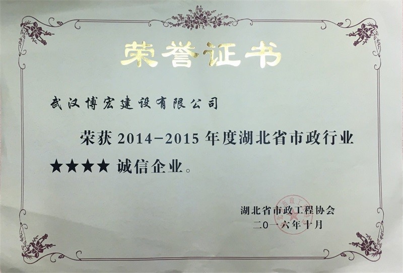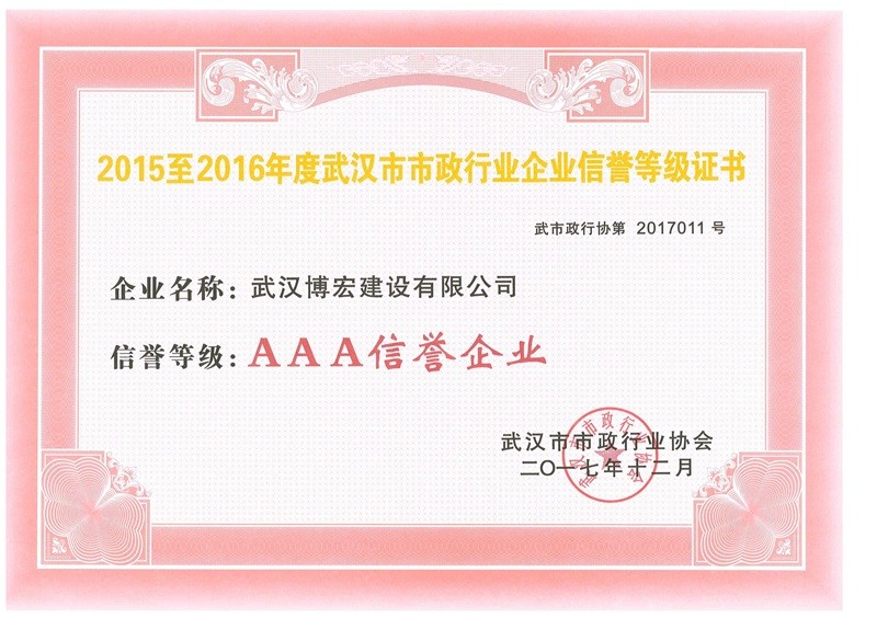 2015-2016市市政行業(yè)AAA信用等級(jí)證書(shū)