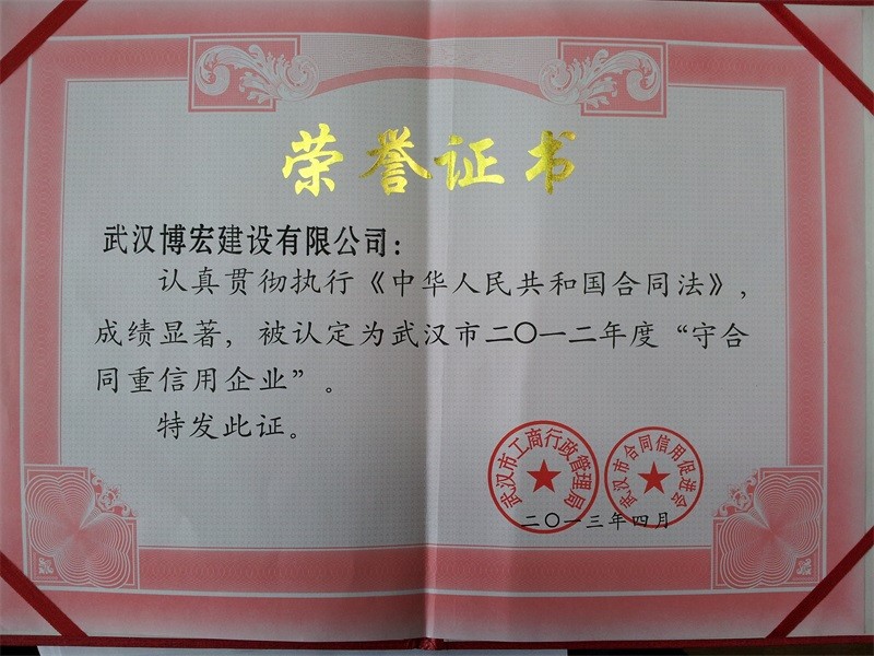 2011年度武漢地區(qū)市政行業(yè)先進(jìn)企業(yè)榮譽稱號
