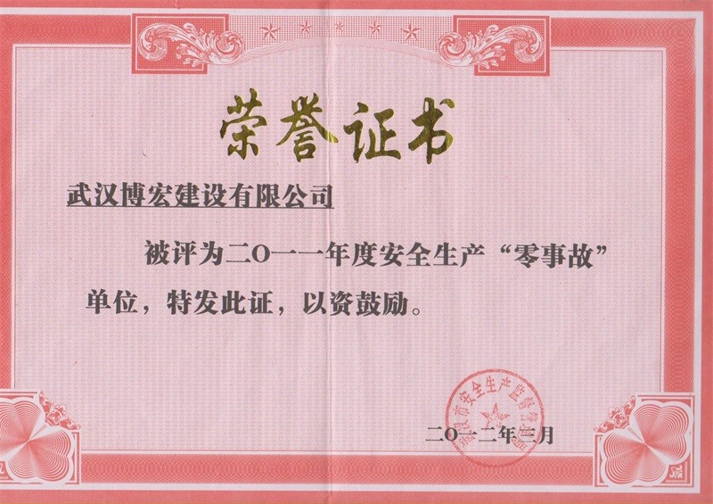 2011年度安全生產(chǎn)零事故單位