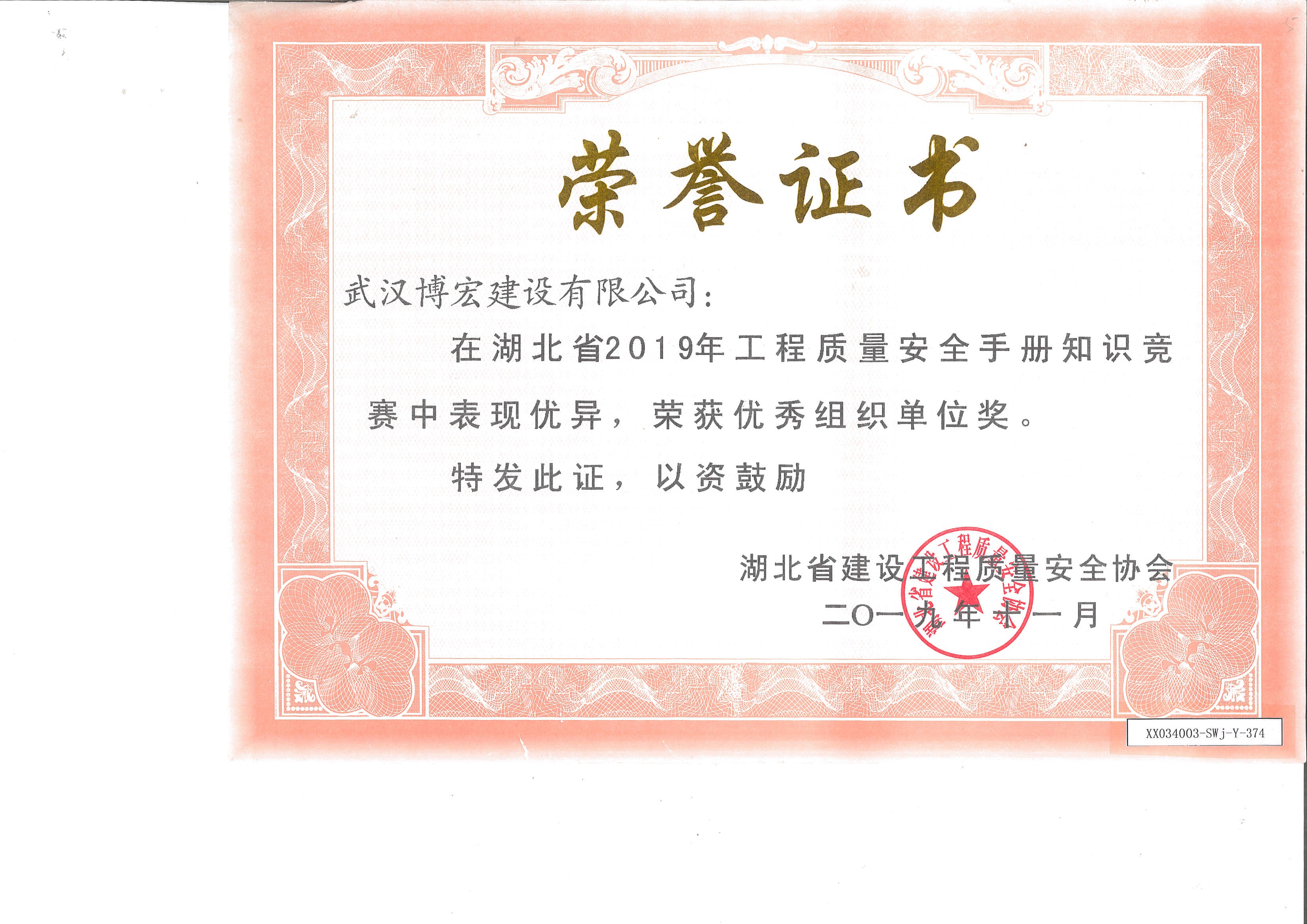 2019年工程質(zhì)量安全手冊知識競賽優(yōu)秀組織單位獎