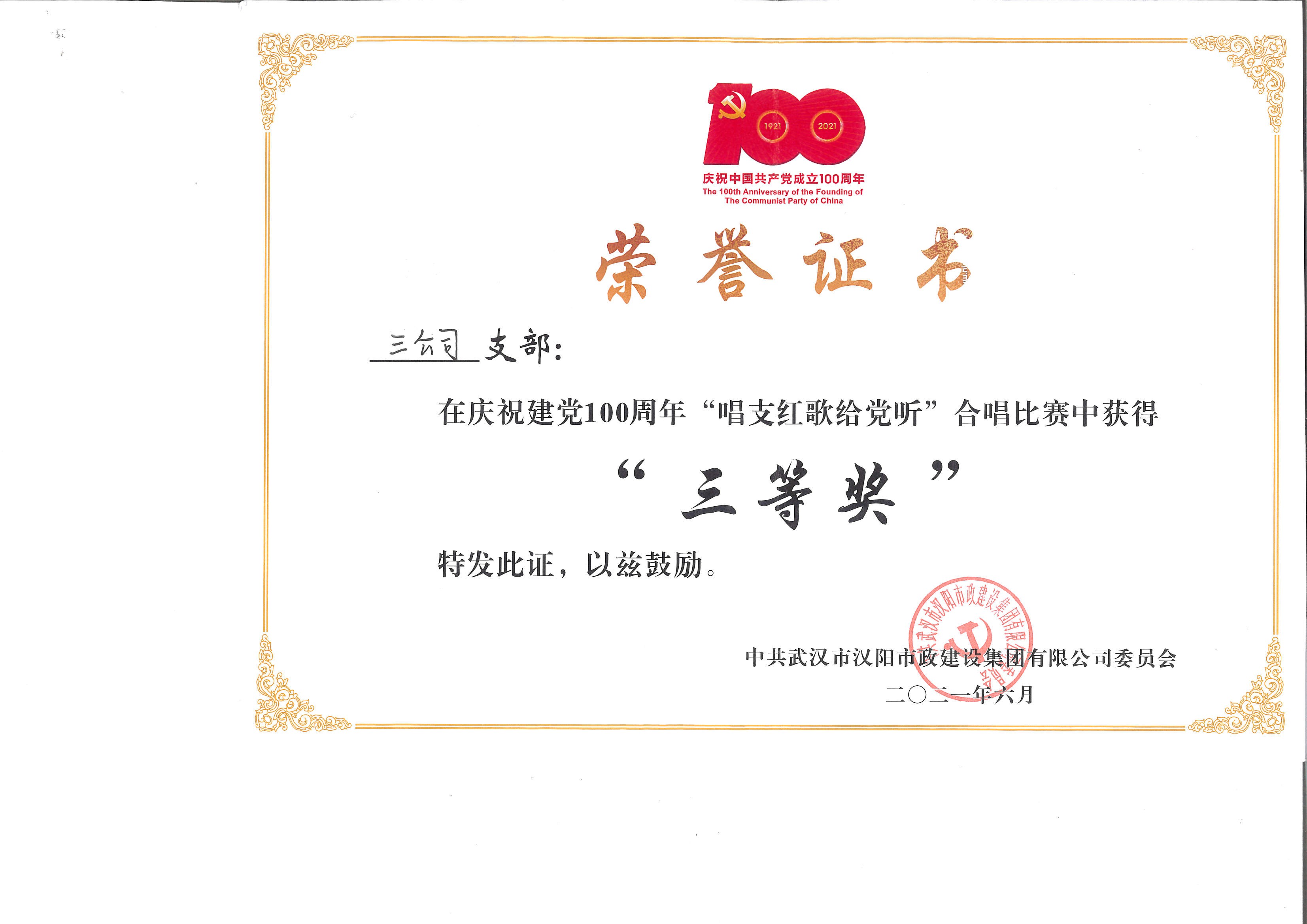 慶祝建黨100周年合唱比賽三等獎