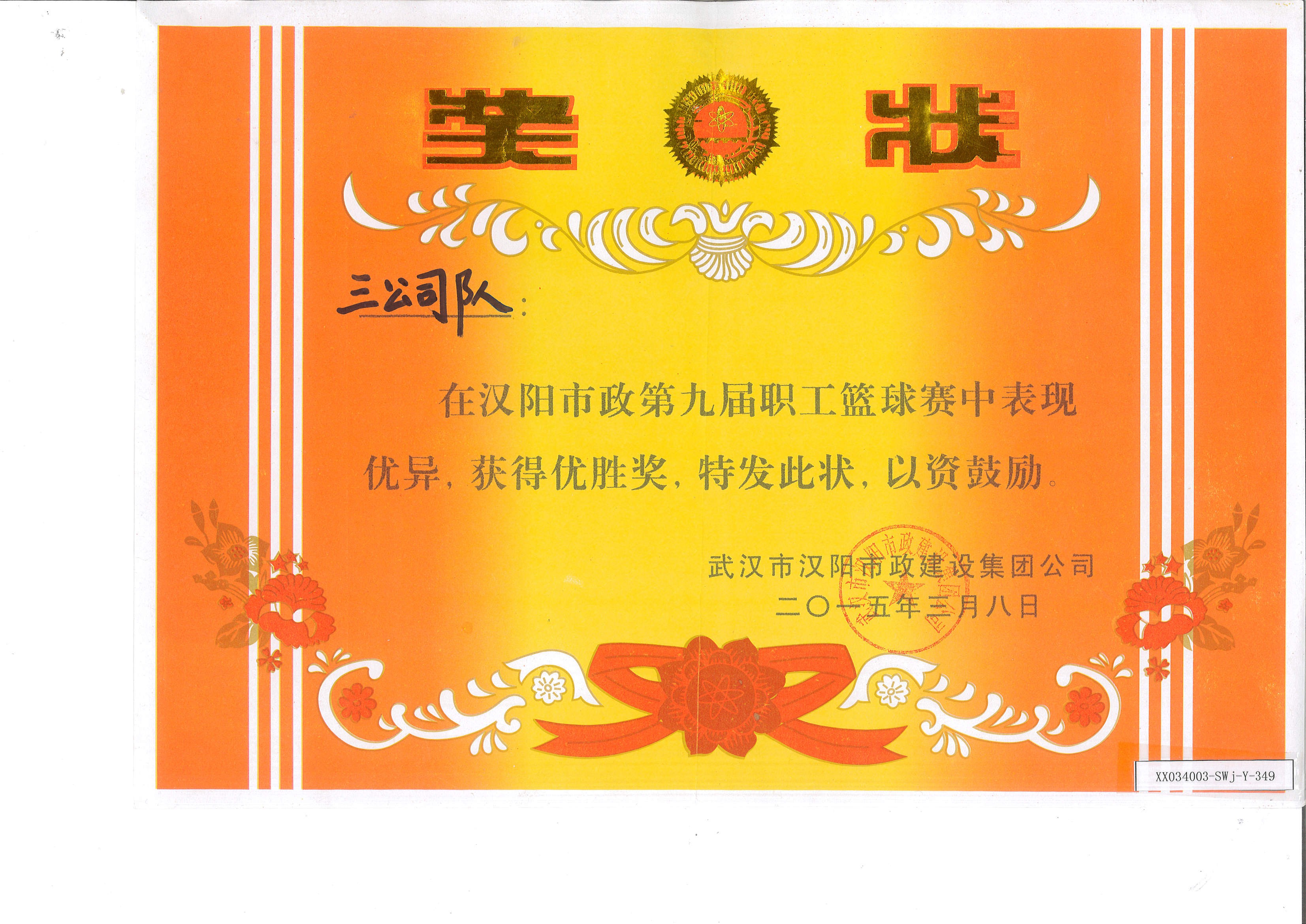 第九屆職工籃球優(yōu)勝獎