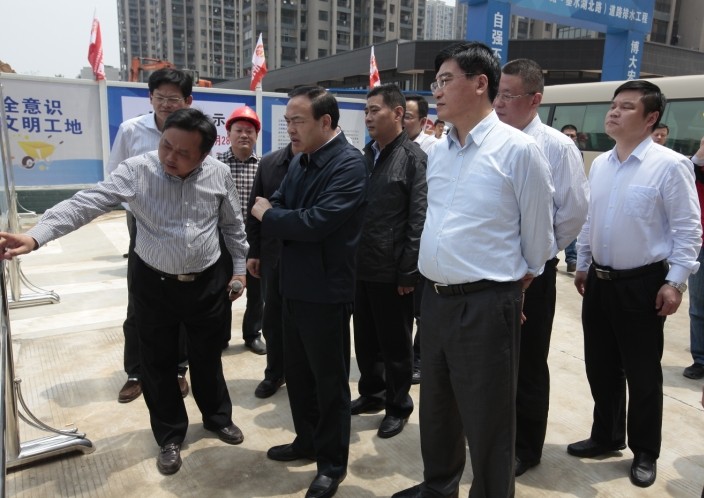 55,武漢市市長(zhǎng)唐良智、副市長(zhǎng)張光清一行蒞臨博宏建設(shè)十升路道排工程項(xiàng)目施工現(xiàn)場(chǎng)檢查指導(dǎo)工作。