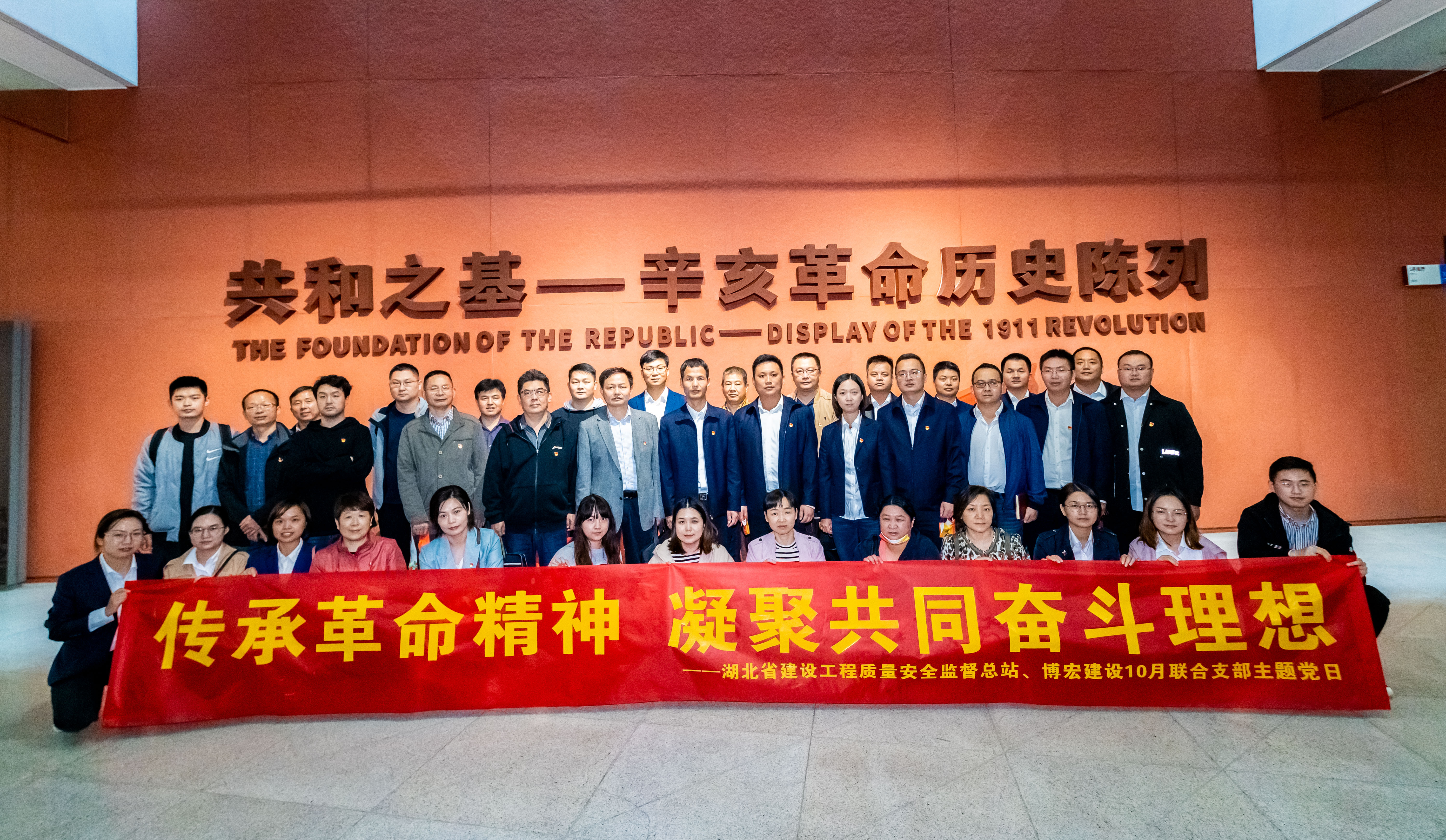 10月14日,湖北省建設(shè)工程質(zhì)量安全監(jiān)督總站(簡稱“省質(zhì)安總站”)與博宏建設(shè)聯(lián)合開展“傳承革命精神,凝聚共同奮斗理想”10月主題黨日活動。省質(zhì)安總站黨支部書記、站長楊碧華、副站長丁建平、副站長徐建軍,博宏建設(shè)黨支部書記、董事長鄒勇,總經(jīng)理蘇琦、黨支部副書記郭一清、副總經(jīng)理辛桂華等共計40名黨員同志參與此次活動。