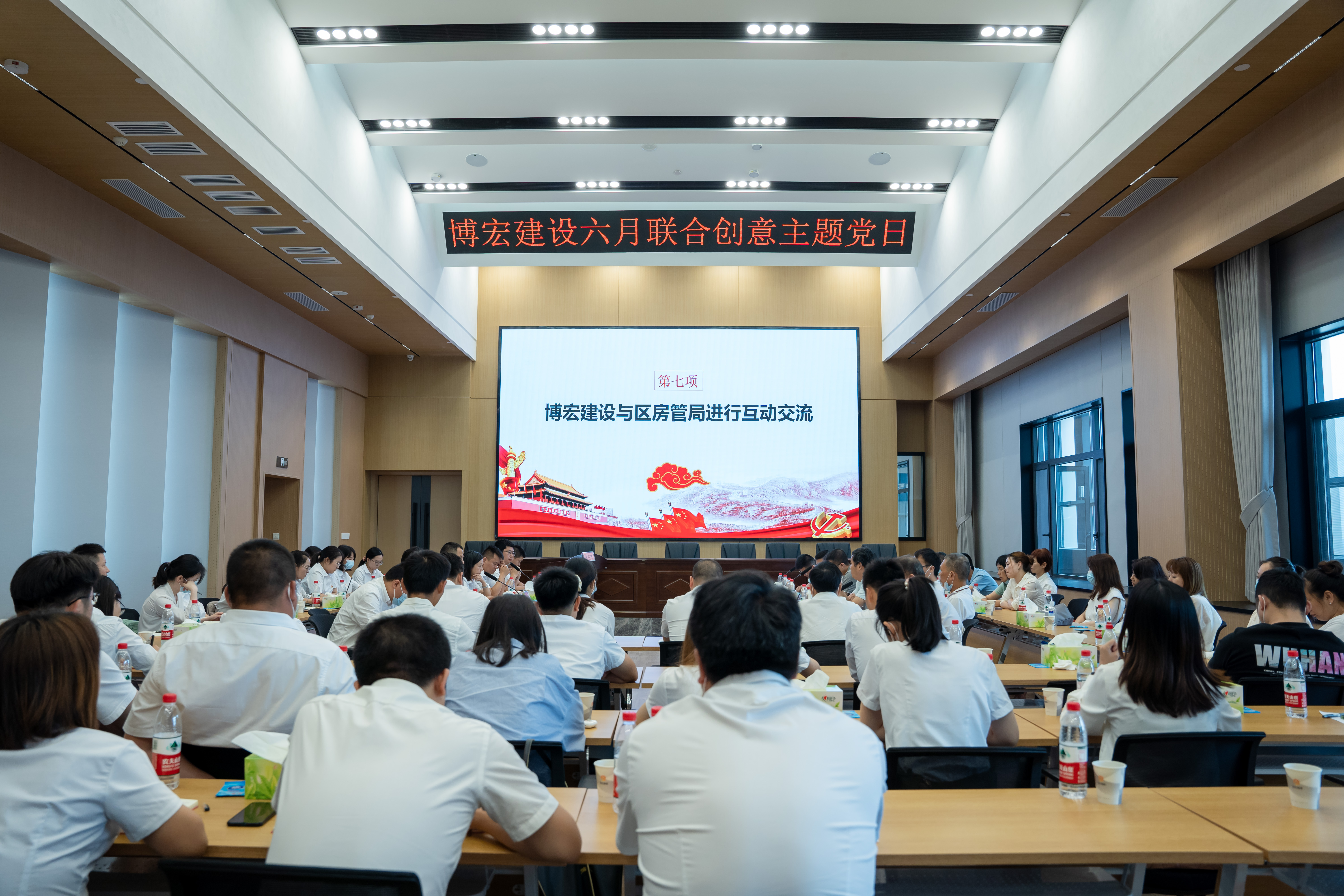 奮斗創(chuàng)造歷史,實(shí)干鑄就未來(lái)。6月9日上午,博宏建設(shè)集團(tuán)與漢陽(yáng)區(qū)房管局聯(lián)合開(kāi)展6月創(chuàng)意支部主題黨日,會(huì)議在博宏建設(shè)集團(tuán)31樓會(huì)議室舉行。漢陽(yáng)區(qū)房管局總工程師戴軍,博宏建設(shè)集團(tuán)黨支部書(shū)記、董事長(zhǎng)、總經(jīng)理鄒勇等黨員代表,共計(jì)60余人參加會(huì)議。