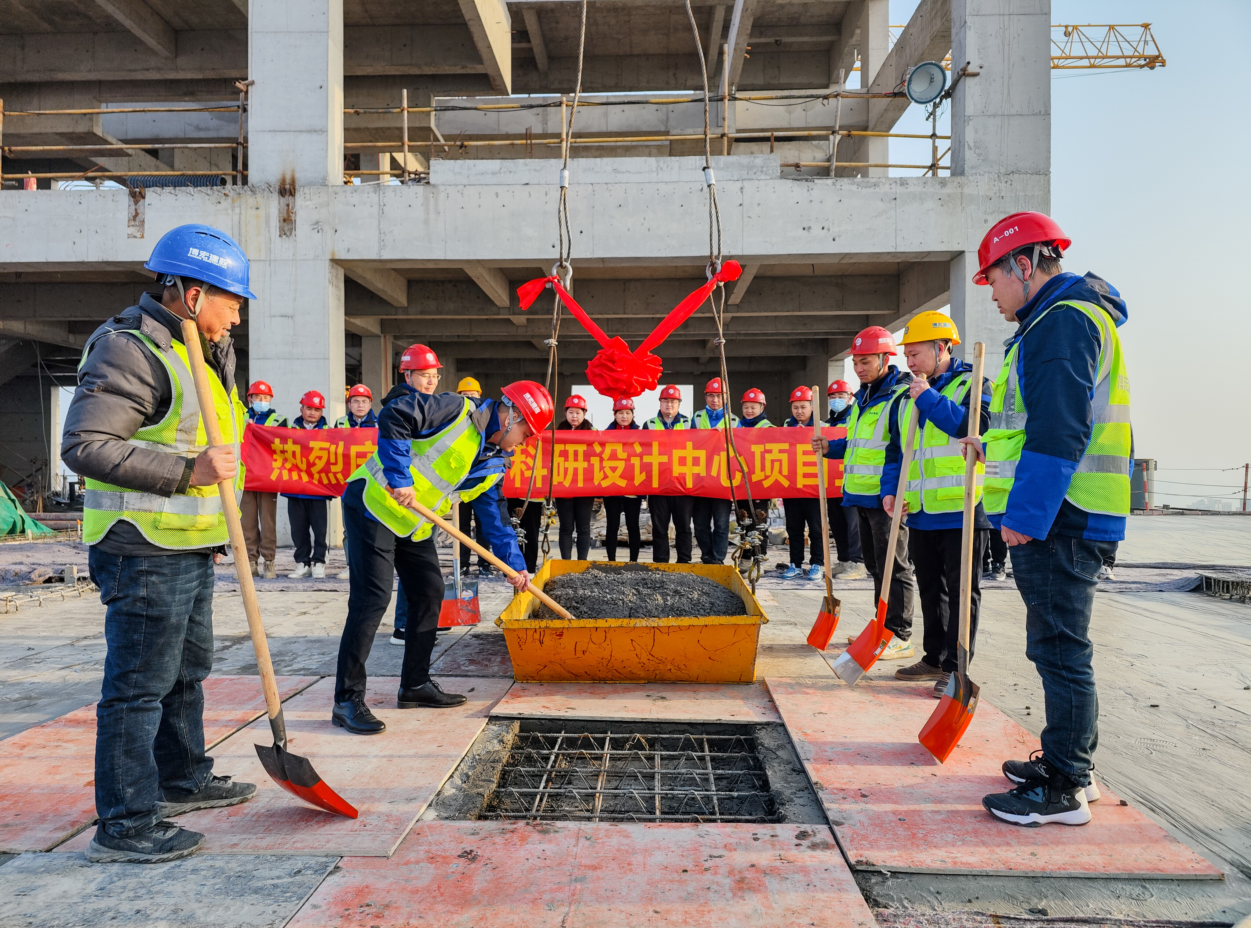 奮斗風(fēng)景多錦繡,趁勢而上開山河。經(jīng)過543個日夜的精心打磨,由博宏建設(shè)集團承建的中南科研設(shè)計中心項目,于1月18日上午8點18分,終于迎來了主樓主體結(jié)構(gòu)封頂?shù)母吖鈺r刻,從地下到地上、從平地到高樓、從藍圖到實景,項目全體管理人員秉持“不破樓蘭終不還”的精神,克服重重困難,匠心精鑄,在新春來臨之際,為這座城市獻上一份禮物。