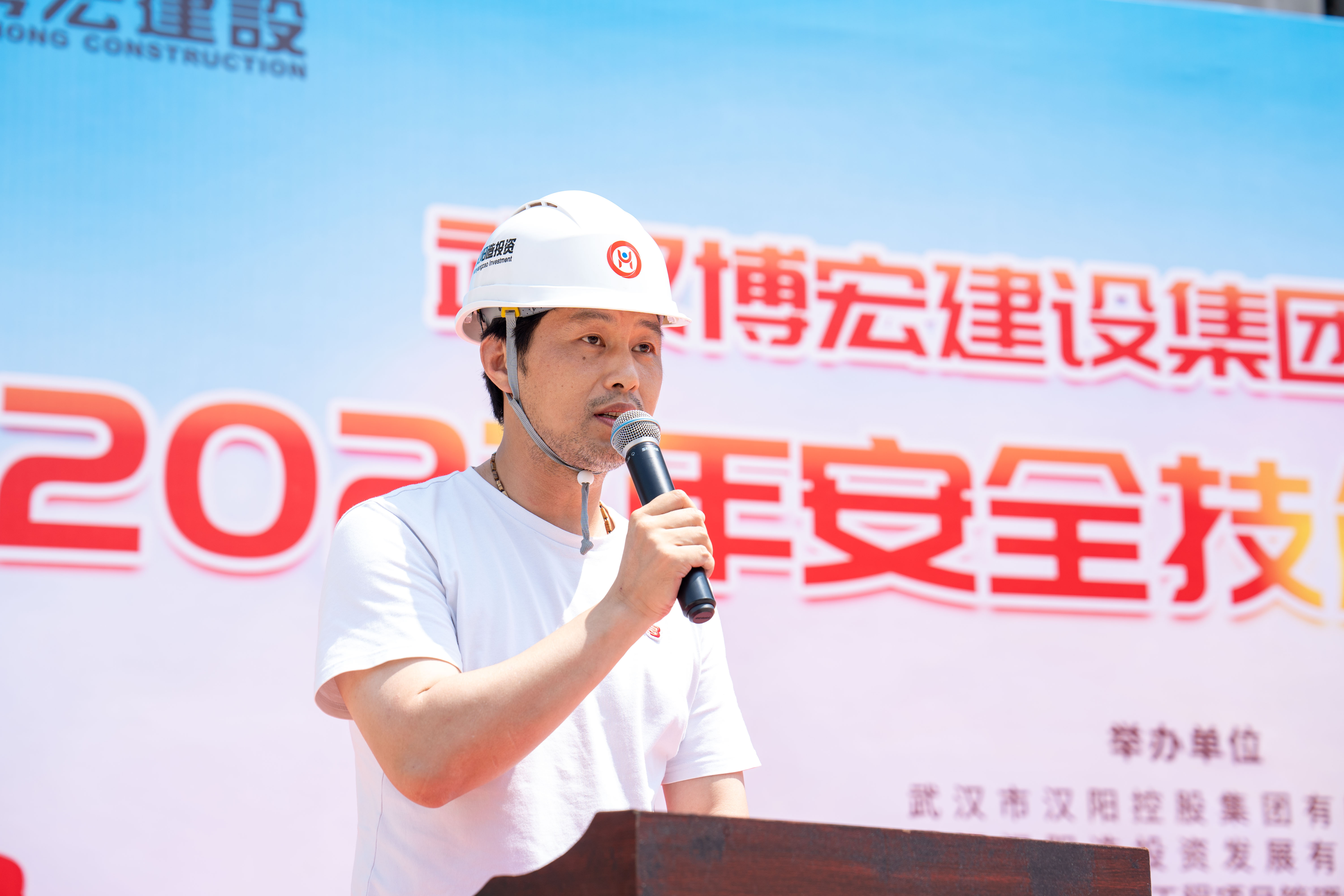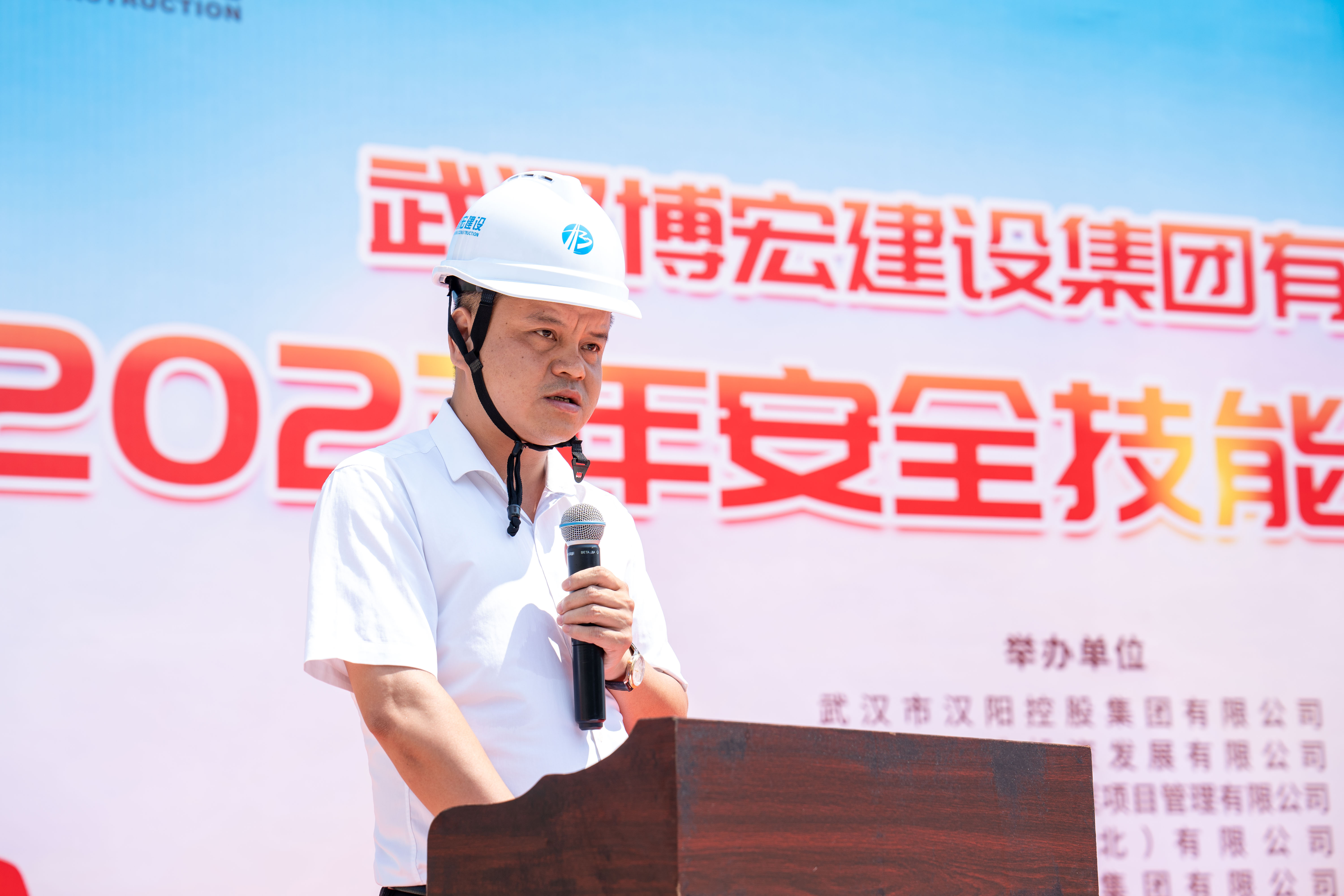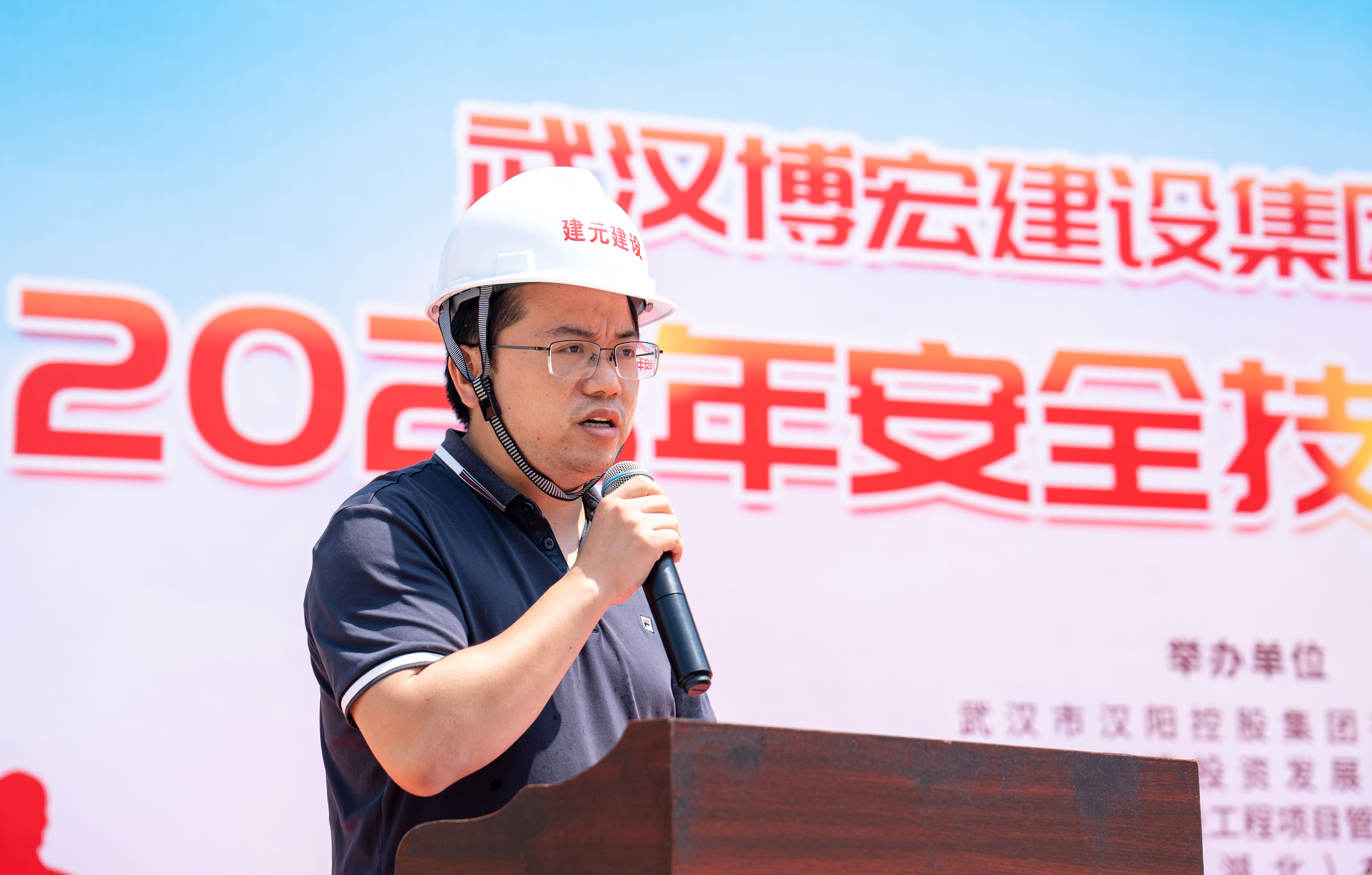 現(xiàn)場,武漢漢陽造投資發(fā)展有限公司工程部部長呂飛翔、武漢市建元建設(shè)工程項目管理有限公司房建部副部長劉志勇分別作出致辭及講話,表達了對本次大賽的希冀與祝福,號召參建各方攜手共進、合作共贏,認清安全管理的嚴峻形勢,振奮精神、自我加壓,消除安全漏洞,抓好安全工作,守好安全底線,開創(chuàng)項目安全管控新局面。