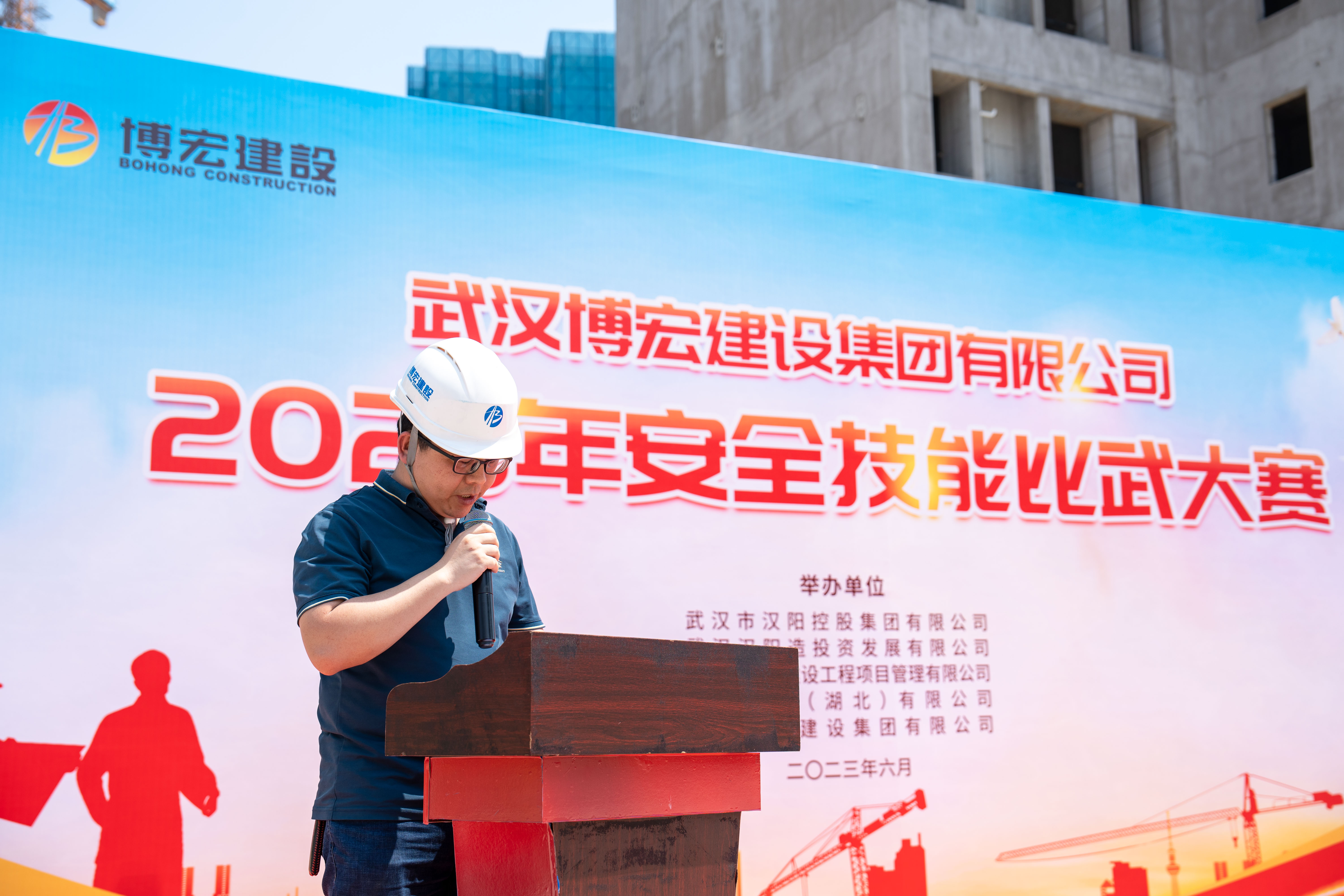 6月9日下午,博宏建設(shè)集團2023年安全技能比武大賽在米糧村還建房A地塊順利舉行。武漢市漢陽控股集團有限公司項目管理部黃圓,武漢漢陽造投資發(fā)展有限公司工程部部長呂飛翔,武漢市建元建設(shè)工程項目管理有限公司房建部副部長劉志勇,南方咨詢(湖北)有限公司項目總監(jiān)許文真等參建單位相關(guān)領(lǐng)導,博宏建設(shè)集團總經(jīng)理助理羅平照、總經(jīng)理助理李暉等相關(guān)領(lǐng)導出席了本次啟動儀式,各職能部門、8支參賽隊伍共50余人參加活動。