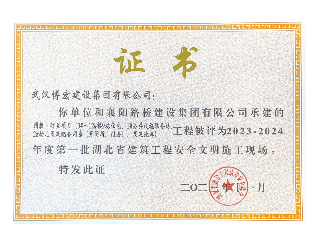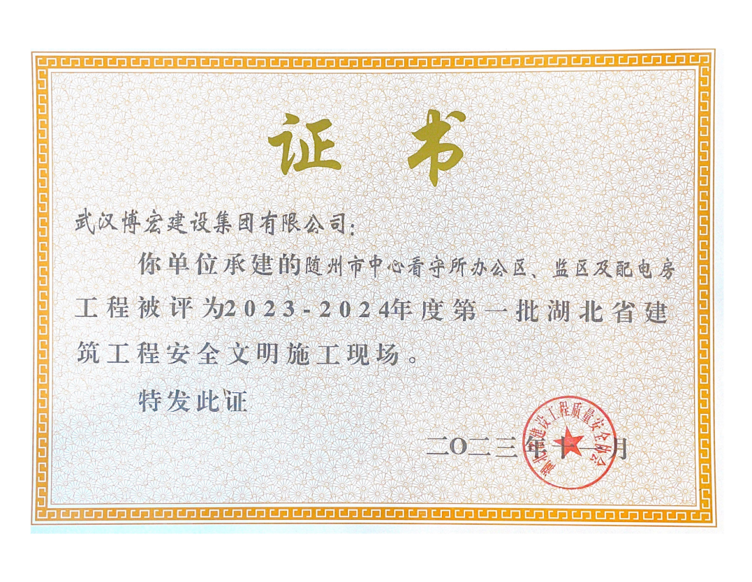 近日,湖北省建設(shè)工程質(zhì)量安全協(xié)會(huì)公布了2023-2024年度第一批湖北省建筑工程安全文明施工現(xiàn)場(chǎng)名單,由博宏建設(shè)集團(tuán)承建的隨州市中心看守所辦公區(qū)、監(jiān)區(qū)及配電房;黃金口產(chǎn)業(yè)園商業(yè)設(shè)施、居住、公園綠地建設(shè)項(xiàng)目;新建工業(yè)項(xiàng)目(漢陽市政科研中心)(EPC)等8項(xiàng)工程獲評(píng)湖北省建筑工程安全文明施工現(xiàn)場(chǎng)。