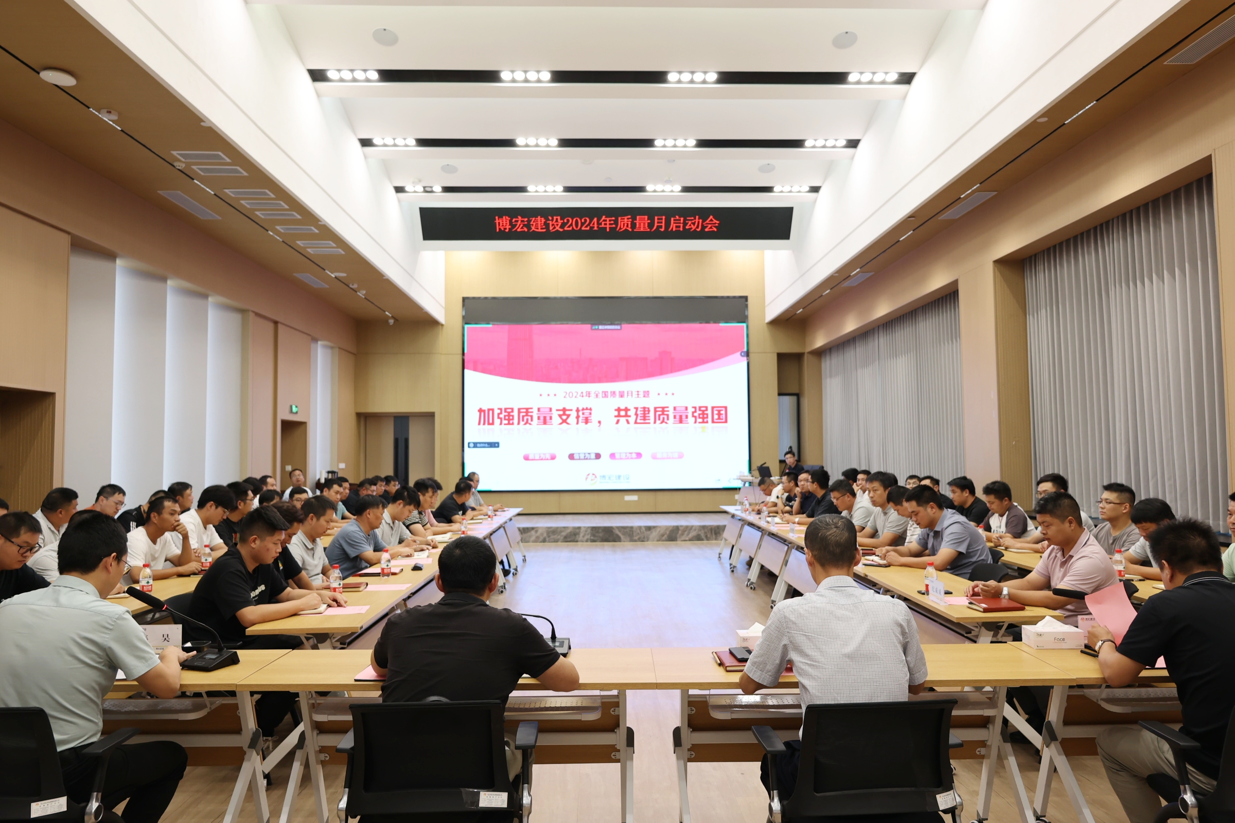 8月29日下午,博宏建設(shè)舉辦以“加強(qiáng)質(zhì)量支撐,共建質(zhì)量強(qiáng)國”為主題的2024年“質(zhì)量月”啟動會,黨委書記、董事長、總經(jīng)理鄒勇,總經(jīng)理助理李暉,市內(nèi)外各項(xiàng)目部負(fù)責(zé)人及質(zhì)量崗位人員90余人參與活動,集團(tuán)質(zhì)安部部長程振東應(yīng)邀出席本次活動。會議由公司質(zhì)量管理部部長姜昊主持。