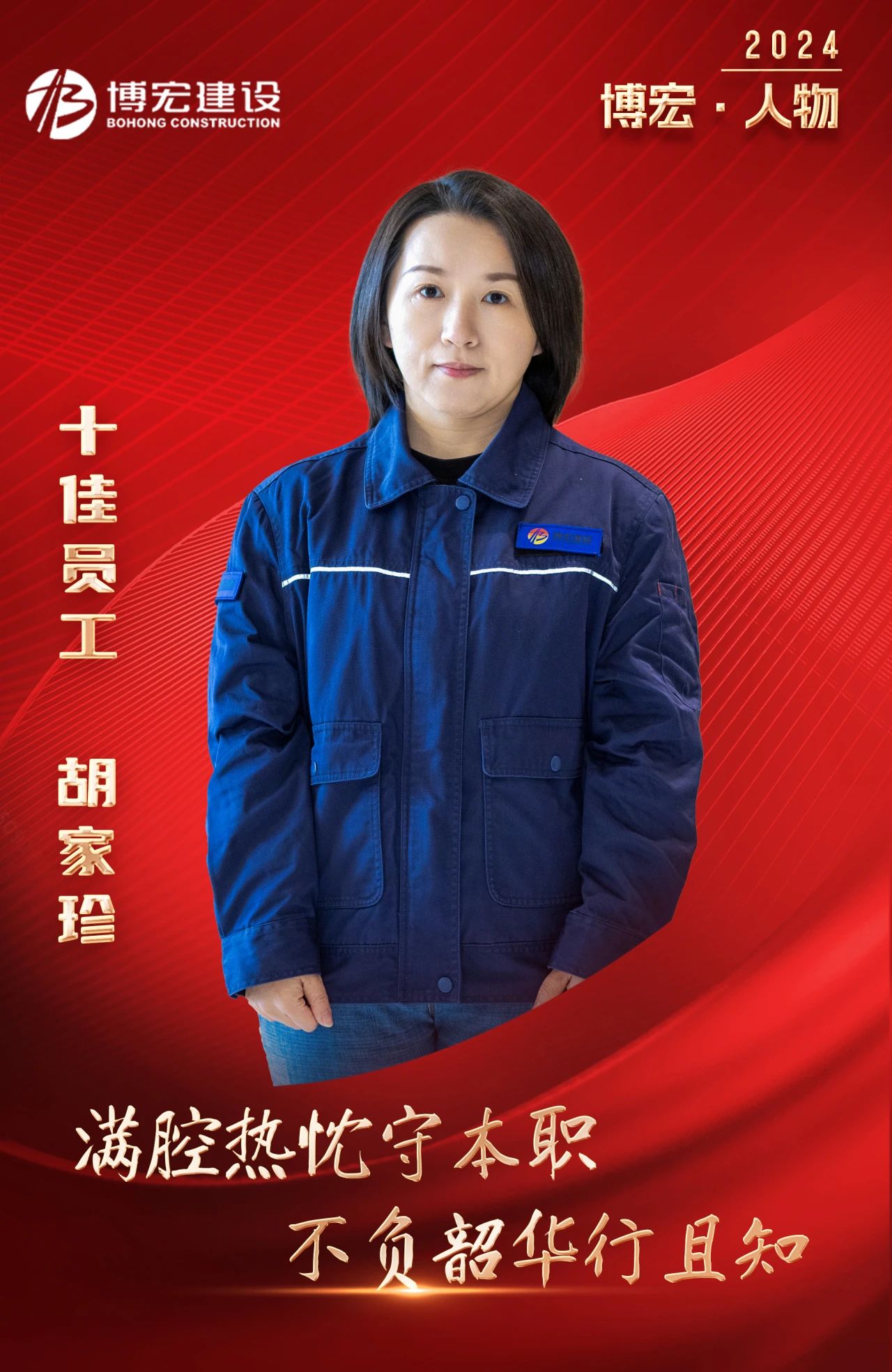 胡家珍,博宏建設(shè)集團五項目部資料主管,2019年3月入職博宏建設(shè),先后參與建設(shè)武漢市第五醫(yī)院西院綜合大樓擴大片建設(shè)項目,新建居住、商業(yè)項目(月湖船院),新建居住、公共設(shè)施項目(新港臨江匯)(二標(biāo)段)等多個項目。她個子不高,卻敢挑重?fù)?dān),干凈利落的干事風(fēng)格彰顯著她的豁達與干練,舉手投足間透露出自信灑脫,一絲不茍的工作態(tài)度讓她在一線發(fā)光發(fā)亮,入職博宏建設(shè)5年,連續(xù)獲得公司2020年度、2021年度、2022年度崗位能手,榮獲2023年度十佳員工,一項項榮譽是夢想照進現(xiàn)實的真實寫照,是默默堅守崗位接續(xù)奮斗的成果。